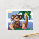 Cute Little Monkey Sitting Next to Banana Tree Postcard
