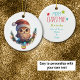 On the front of this cute keepsake ceramic ornament for a child is an adorable little owl wearing a Santa hat. He is perched on an evergreen bough that glows with Christmas lights, and a decorated bulb hangs at the middle. The back of the ornament has a Merry Christmas message and your signature. Perfect for a daughter, son, granddaughter or grandson.