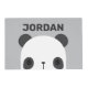 This design features cute little panda bear with personalized name in grey modern sans serif font style on light grey background.