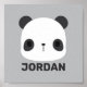 This design features cute little panda bear with personalized name in grey modern sans serif font style on light grey background.