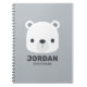 This design features cute little polar bear with personalized name in grey modern sans serif font style on light grey background.