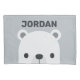 This design features cute little polar bear with personalized name in grey modern sans serif font style on light grey background.