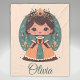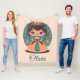 Personalized cartoon, cute, little princess in a green and pink dress with soft pink background.