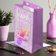 This design comes with a cute little rainbow gecko lizard on a pink background with pink dots. It is perfect for a birthday gift for a girl. You can change the text and use the bag for another occasion.