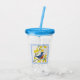 This acrylic drink tumbler with straw and lid has a cute little red and blue bird sitting on a branch with bright yellow flowers in a fancy light blue border.