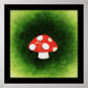 A cute illustration of a spotted red mushroom. Background is a green weathered texture.