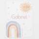 Give the gift of warmth and personalized love with our baby blanket! Perfect for wrapping your little one in comfort, this blanket is adorned with a whimsical smiling sun and a delightful watercolor rainbow. Personalized with the baby's name and birthday, it will become a cherished keepsake for years to come. Made with soft materials, it brings a touch of modern flair to any nursery. Your thoughtful gift will surely be appreciated, providing both comfort and style to the new arrival. Let's welcome the precious bundle with this special and personalized baby blanket! Part of the 'Here Comes the Son' baby shower collection.