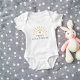 Cute and modern baby bodysuit features graphic yellow sun, heart and "mama's little sunshine" in modern font. Customize the name to whatever your need is.