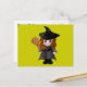 A red-headed witch with a little straw broom and a grey cobwebbed dress. The default greeting on this postcard reads "Happy Halloween!," but you can customize and personalize it for any occasion.