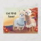 Get Well Soon Postcard featuring two cute llamas in a fantasy scene. Great to send well wishes for a sick child.