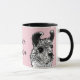 Get your llama mama this amazing mug! It has a black and white llama illustration and the phrase "Llama Mama" in black script. The background is pink.