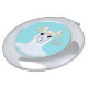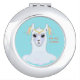 Cute Andean llama on light blue mirror. This llama is above the clouds on turquoise background. Text can be personalized.