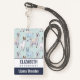 Personalized name badge with a cute pattern featuring whimsical llamas. One is laying down, one is holding a flower in his mouth, and one is looking at you suspiciously. These animals have lots of charming character. Set on a green polka dot background.
