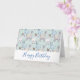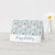 Happy Birthday greeting card with a cute pattern featuring whimsical llamas. One is laying down, one is holding a flower in his mouth, and one is looking at you suspiciously. These animals have lots of charming character. Set on a green polka dot background.