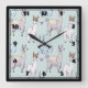 Cute Llama Pattern on Polka Dots Square Wall Clock