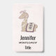 A name tag with a drawing of a cute little llama wearing a crown and a Peruvian blanket. Looking fancy and elegant.