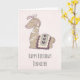 Birthday card with a drawing of a cute little llama wearing a crown and a Peruvian blanket.