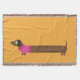 A quality printed throw has its advantages. This is a much finer weave throw than its loopier cousins, and though lighter, it is worth the investment for custom room accessorizing. The back is much prettier than the typical brown, and the fringe on the long sides very vivid, the selvage nicely done. Before photographing, I washed the throw in cold water, delicate, with a thicker woven throw the same size. On tumble dry low, this throw was dry in half the time as the other. This is a very practical quality if you use throws for furniture covers or to wrap up in frequently. The sleekness of the fabric makes it a great layer for accenting or protecting without the feeling of sitting on too much stuff. Perfect for napping or when you feel a light chill coming on. The color printing is beautiful and on this fabric, matched the design and color of my Photoshop image. This is an advantage for blending room fabrics and colors. The fringe on the short sides prints the colors from the design image and therefore varies from the side fringe. I streaked a white fractal line through the plaid pattern to give the illusion of weaving. This printed as crisp as an illusory thread, and put some white in the short side fringe, showing another advantage of print vs loomed- for artistic purposes, line lines, detail, and color integrity can be planned and preserved. My loomed throws have color limitations and more of a needlepoint texture. Print throws reproduce an exact image. The throw felt a little stiff straight out of the package, but this went away in the first delicate wash. Of course I searched the wash water for ink or bleeding and there was none.