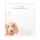 Show your love for dachshunds with this adorable, personalized notepad! A charming illustration of a long-haired dachshund, with big, soulful eyes, peeks out from the lower-left corner. The soft, neutral background keeps the focus on the sweet pup. Customize this notepad with your own text. Perfect for dog lovers, to-do lists, or quick notes.