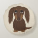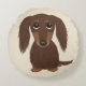 Cute Longhaired Chocolate Brown Dachshund Dog Round Pillow