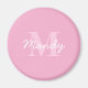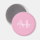 Cute Looking Cursive Name & Monogram | Pink Magnet