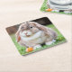 Cute Lop-Eared Rabbit in Grass with Carrot Square Paper Coaster
