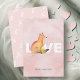 Make Valentine's Day extra special with these kids Valentines cards, featuring an adorable personalized watercolor fox and a love-themed design! This children's Valentine's Day card showcases the word LOVE alongside a charming fox, personalized with your child's name, all set against a soft blush pink background.