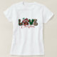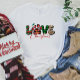 Show your love for Christmas with this "Love Christmas" T-shirt, decorated with holiday-themed letters and paw prints. Ideal for dog lovers wanting a fun and festive holiday look.