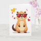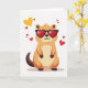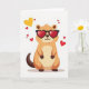 This card shows a tan-and-brown animal that looks like a groundhog or big squirrel, sitting in the center on a plain white background. It’s wearing oversized heart-shaped sunglasses with black frames and see-through red lenses. A small smile shows under the glasses, giving it a sweet, confident look. Around the animal, several hearts float in the air, including one large yellow heart near the upper left and a handful of smaller red hearts scattered nearby. The simple background keeps your attention on the character and the hearts, so the romantic theme feels clear and easy to enjoy 💘. There isn’t any text on the front, so the picture does all the talking ❤️. It’s a light, affectionate card that works for a crush, partner, or close friend 😘.