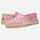 This awesome pair of espadrilles features a cute cartoon of a pink owl with sleepy eyes, a small beak and cute little feet. There is bright pink text inside the owls tummy that says, “Owl Always Love you”. This is the perfect gift for showing someone special how much you love them.
