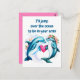 Dolphin valentines greeting card features wedding couple in love with phrase I `ll jump the ocean to be in your arms
