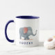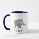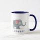 Personalized Mug featuring a Cute adorable elephant with funny ears in pink on white background. Cute and fun design for special for kids and children who loves elephnat lions and tigers and all the animals. Custom monogrammed gift. Personalize it adding your name or custom text - Please use customize it button or edit button. Customisable name and background color