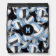 This girls' volleyball drawstring backpack features a pattern of varied size stylized light blue, black and white volleyballs turned every which way on a customizable powder blue background - the blue and black volleyball panels are blended with an artsy, girly floral pattern - customize with athlete's monogram - by katz_d_zynes