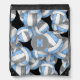 This girls' volleyball drawstring backpack features a pattern of varied size stylized light blue, gray and white volleyballs turned every which way on a customizable light gray background - the blue and gray volleyball panels are blended with an artsy, girly floral pattern - customize with athlete's monogram - by katz_d_zynes