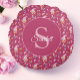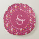 Cute magenta bunny garden pattern Monogram Name Round Pillow