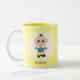 Modern cute elf on light yellow background Mug. Name can be personalized.