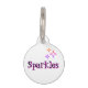 I don't have a dog but I use this to clip onto my tote bag. It is much less bulky than a luggage tag and looks like a charm. Printing was as shown when I ordered