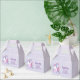 Tiny favor box with an adorable image of a sweet baby unicorn head portrait. A gentle butterfly visiting, fluttering near her nose. A bouquet of flowers around her neck complete this very cute design.
