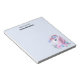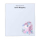 A notepad with an adorable image of a sweet baby unicorn head portrait. A gentle butterfly visiting, fluttering near her nose. A bouquet of flowers around her neck complete this very cute design.