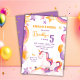 Cute magical modern unicorn rainbow 5th birthday invitation
