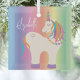 Cute Magical Rainbow Unicorn Personalized Name Glass Ornament