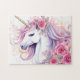 Cute watercolor unicorn with pink flowers, floral decorations. generativecontent