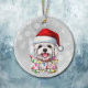 Cute Maltese Dog Wrapped in Christmas Lights Ceramic Ornament