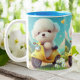 This personalized mug features an adorable Maltese white puppy dog riding a vibrant yellow scooter. The perfect gift for pet lovers and dog enthusiasts, this unique mug is sure to bring joy and smiles. Customize it with a name or special message to make it even more special. Enjoy your favorite beverage in style with this charming mug that captures the playful spirit of our furry friends. Ideal for daily use or as a thoughtful gift, this customized mug is a must-have for any dog lover's collection.