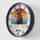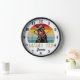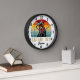 The size of the clock is dramatic and the abstract alcohol ink design is soothing and intricate at the same time. I chose the black frame that adds pop to the blue and gold design. The gold printing would be better in a slightly darker or larger font. I love it and I’m looking for just the right place in ny new apartment. I would recommend this clock for a personal gift or a present. I feel that the quality is excellent for the money! I’m a bit of a clock nut so I’m pretty particular about my purchases. The clock is larger in diameter than many if the clocks I have, so it stands out very well. I think a slightly darker printing color and a moderately larger size would best suit a professional decor or add more impact in a work place item.