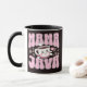 Mom will love this adorable mug as she drinks her coffee every morning. It's the perfect gift for Mother's Day. This cute mug for mom features pink oversized text that says "Mama Java" with a cute little steaming cup of coffee decorated with coffee beans and a black background.