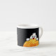 This Espresso Cup feauters a hand drawn little funny man in the moon on black. The man is white with a cute face. The moon is yellow. Fun and cute motif for anyone with a sense of humor! Cute gift idea for anyone. Fits for any occasion.