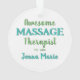 Honor your massage therapy journey with this ornament featuring a cute design. The teal and green awesome massage therapist text can be tailored with your name and established year for a personal touch. Great for massage therapists to display on a tree or for clients to gift as a festive keepsake.