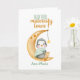 A big cute maternity leave card featuring a baby penguin sitting on a crescent moon. A lovely card to give to someone who you know is going on maternity leave Great to pass around the office for staff to write a lovely personal message for other co workers or even your boss who is expecting a baby Customize by amending the titles and personalize the card by adding a name and message. . The inside message currently reads " Have an amazing time with your baby" .