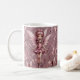 This tiled illustration of a mauve-colored pixie fairy is featured on the exterior of a simple white ceramic mug